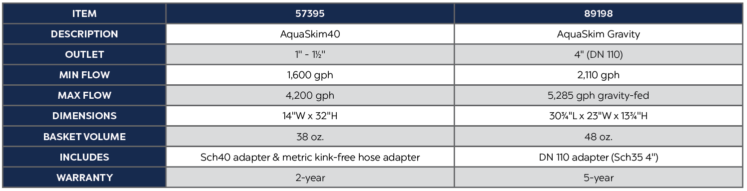 - AquaSkim Gravity connects directly to gravity-fed system intake